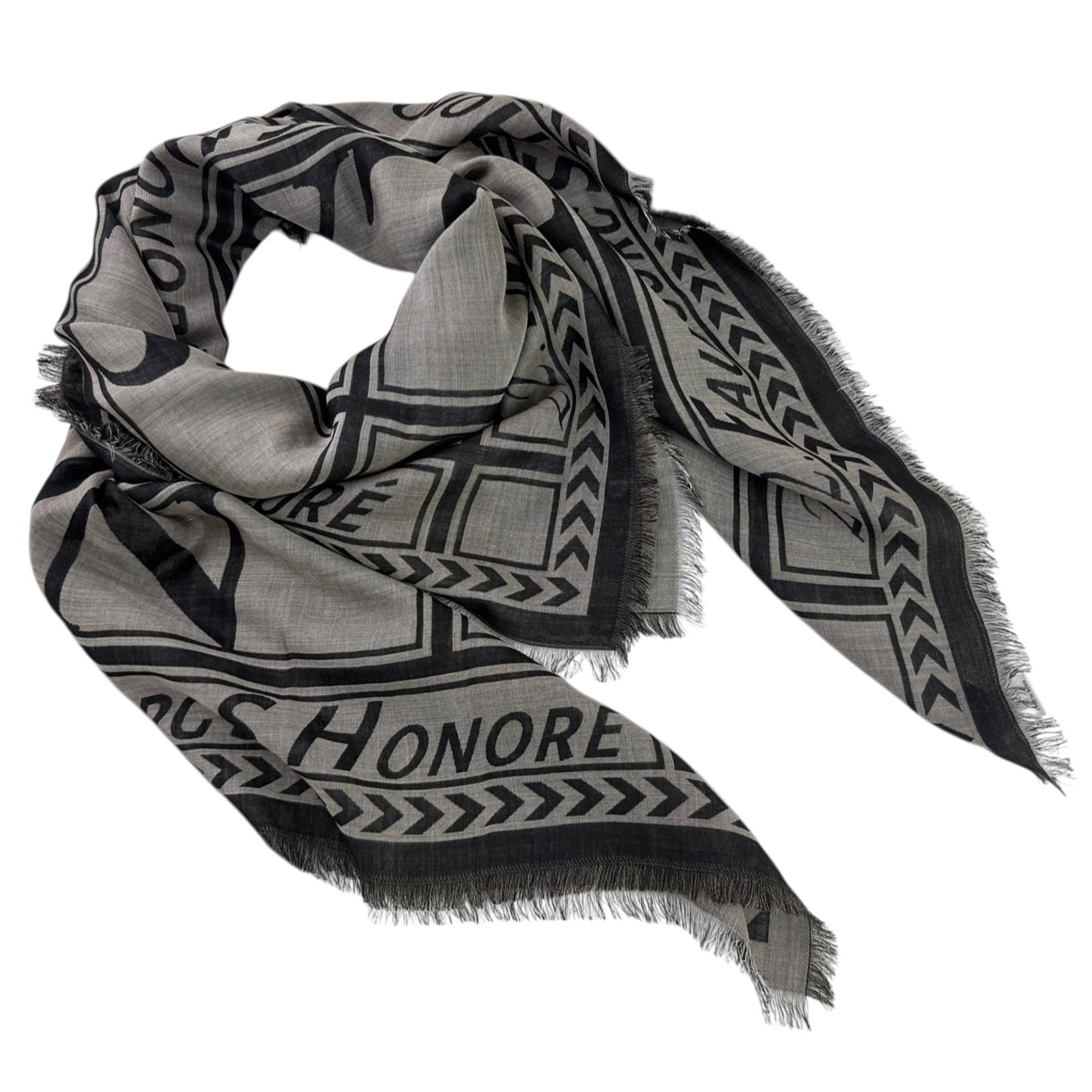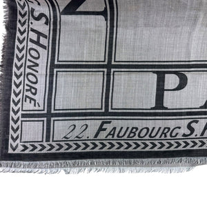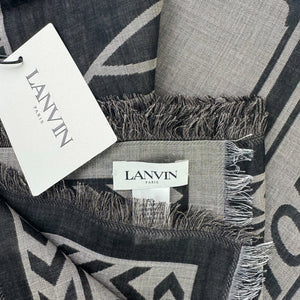 - SALE - Genuine Lanvin scarf, signature gray '22, Faubourg Saint-Honoré' design, soft wool/ silk, extra large 55" square, short fringe, made in Italy. Authentic Lanvin scarves, women collection accessories at outlet prices.