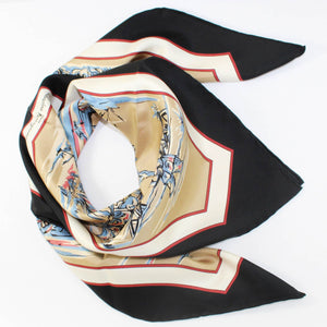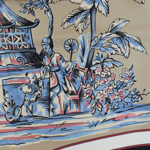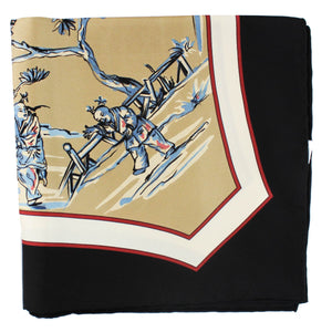 - SALE - Authentic Salvatore Ferragamo scarf, dark blue taupe-cream Japanese/ Asian garden design, hand stitched border, large twill silk foulard, made in Italy. Authentic Salvatore Ferragamo designer scarves, quality Italian accessories at outlet prices.